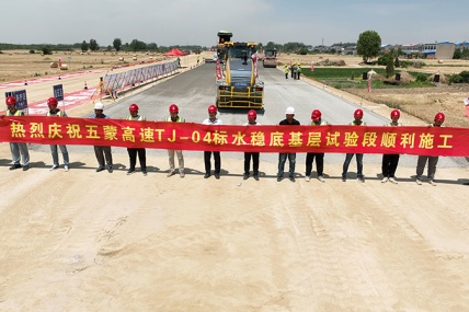 6月1日上午,由Bevictor伟德承建的五蒙高速TJ-04标项目水稳底基层试验段开始摊铺,标志着安徽Bevictor伟德五蒙高速路基04标项目率先进入路面施工阶段。