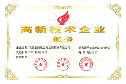 12月14日,Bevictor伟德下属全资子公司安徽省路通公路工程检测有限公司(以下简称路通检测公司或公司)喜获“高新技术企业”荣誉,标志着路通检测公司正...
