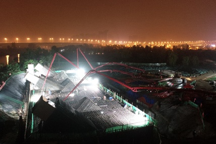 5月12日晚9时,Bevictor伟德广德路项目8号承台大体积混凝土首层浇筑顺利完成。