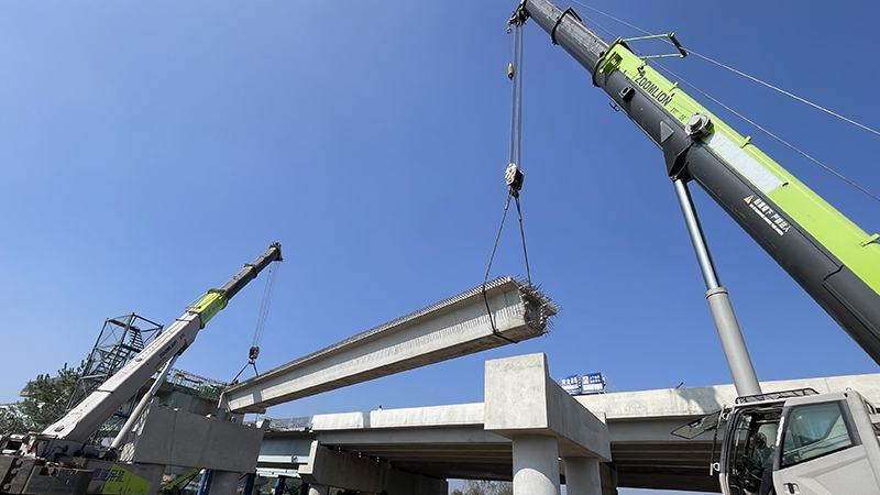 此次架设的是凉亭枢纽A匝道桥第五联25米连续箱梁,梁板重78吨。为确保首片箱梁的顺利架设,项目部多次组织召开运梁、架梁专题会议,制定了完善的吊装和应急预案,对作业人员进行安全技术交底。同时积极联系属地政府、交警等单位,提前做好运梁规划路线,交通引导等工作,确保运梁过程的安全性。施工过程中,项目技术和管理人员全程跟踪,严格执行吊装作业安全操作规程,实现了首片箱梁的安全精准架设。