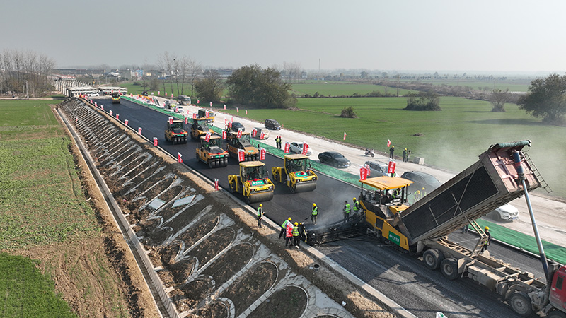 五河至蒙城高速公路TJ—04标沥青试验段顺利铺设