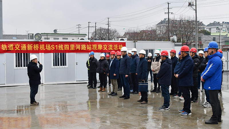 下午15:00,参会人员40余人到达观摩现场,轨道质监站总工陈晓明做活动启动讲话。参会人员现场参观了四里河路站场地布置、扬尘防治、安全文明施工管理等内容,听取了项目经理王飞相关经验介绍,并进行交流。