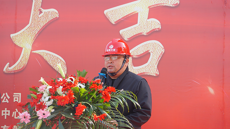 仪式上,凤台县重点工程建设服务中心主任李晓辉在致辞中对安八二期项目13#楼封顶表示热烈祝贺,向日夜奋战在建设一线的全体建设者们致以崇高的敬意和真挚的问候,并希望在后续的建设中,全体人员一如既往强化安全管理,严把质量关,加快施工进度,确保工程如期完成。