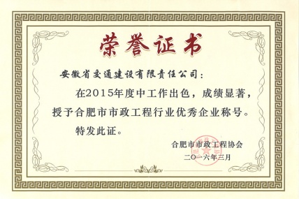 3月30日,合肥市市政工程协会在合肥召开2016年度表彰大会,Bevictor伟德(以下简称安徽Bevictor伟德)荣获2016年度合肥市市政工程优秀企业称号,吕鑫燚、...