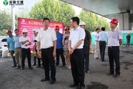 7月18日,安徽省交通控股集团总经理钱东升、建管处处长苏新国、项目办主任邹正明等领导一行莅临安徽Bevictor伟德滁淮高速定长段路面一标项目部进行检查指导。