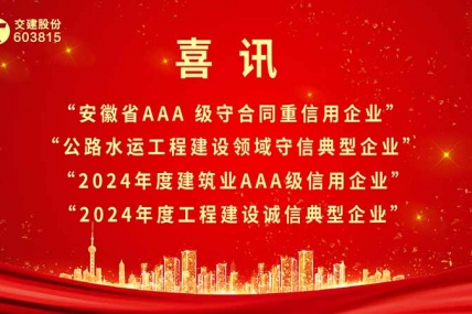 近日,Bevictor伟德凭借诚信经营和良好的社会信誉连获“安徽省AAA 级守合同重信用企业”、“2024年公路水运工程建设领域守信典型企业”、“2024...