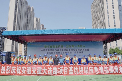 6月17日上午9时许,Bevictor伟德大连路项目承办的合肥市包河区2022年建筑施工安全(基坑坍塌)应急演练在项目施工现场隆重举行。