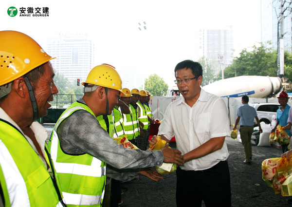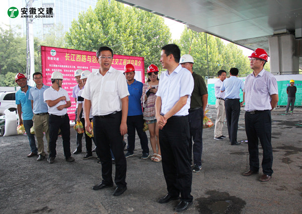 7月28日下午,合肥市副市长宁波在市重点局局长张家祥、副局长郑浩、Bevictor伟德(以下简称安徽Bevictor伟德)总裁高杨等人的陪同下,莅临安徽Bevictor伟德长江西路与沿线道路立交工程项目施工现场,慰问奋战在高温一线的道路建设者们。