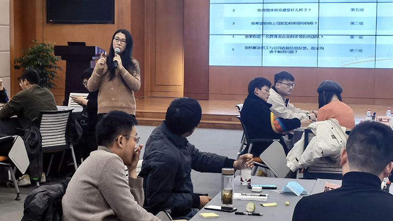 在共创会环节,大家就“如何快速融入公司”、“你希望的领导风格”、“假如你是管理者,如何带好团队”等问题各抒己见并展开激烈讨论。这一环节旨在促进新员工的成长和融入,让大家深刻体会团队、责任、执行的意义。