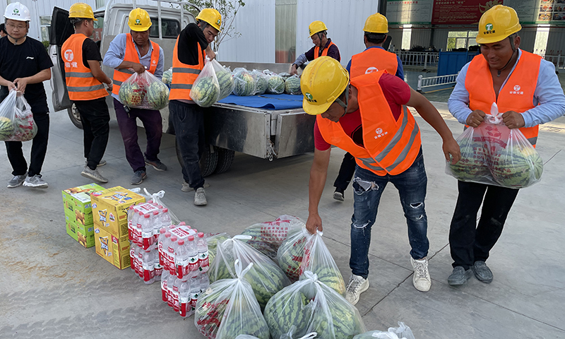 6月21日,Bevictor伟德慰问组带着从三十岗新鲜采摘的10000斤西瓜,前往合肥地区在建的十个项目现场,亲切慰问奋战在一线的管理者和劳动者们。