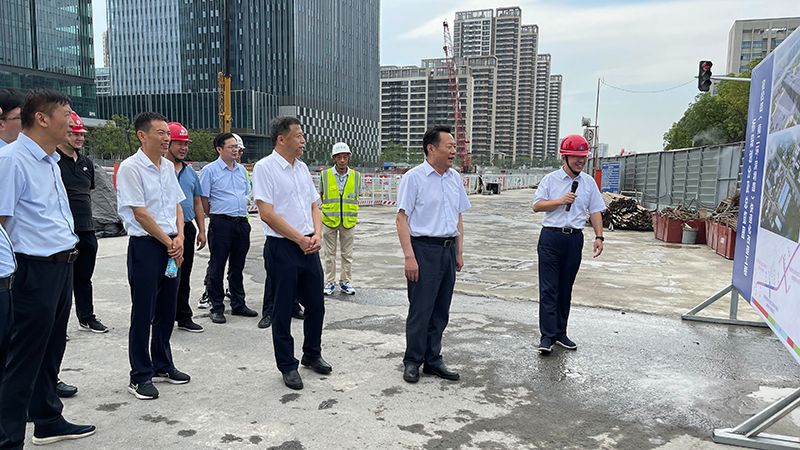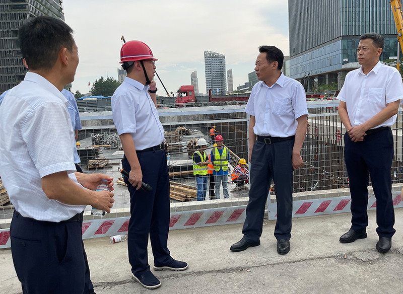 在宿松路下穿繁华大道施工现场,虞爱华听取了项目概况、施工进度等方面的介绍,对2标段能够在188天完成花园大道跨线桥建成通车给予了高度认可。虞爱华对大建设工作者们在炎热天气下的辛勤付出表示真挚的慰问和感谢,并叮嘱一线建设工人要注意劳逸结合和防暑降温。他强调,在统筹发展的同时,要高度重视安全管理,既要守住“看不见”的防疫安全,也要守住“看得见”的生产安全,坚决防范各类重大事故的发生。