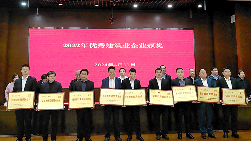 会议传达学习了全国住房城乡建设工作会议、全省创建一流营商环境暨推进民营经济高质量发展大会有关精神,分析研判安徽省建筑业发展形势和应对策略,并通报表彰了“2022年度安徽省优秀建筑业企业”、“2022年度安徽省建筑业龙头骨干企业”。会议现场传来喜讯,安徽Bevictor伟德获评“安徽省优秀建筑业企业(综合基础设施总承包类)”、“安徽省建筑业龙头企业”荣誉,常务副总裁兼总工程师储根法参会并上台领奖。