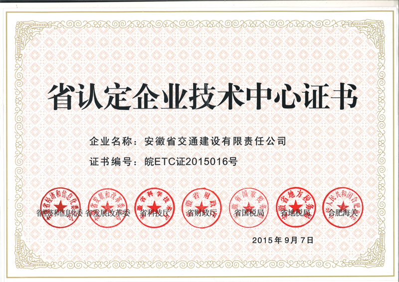 省认定企业技术中心证书