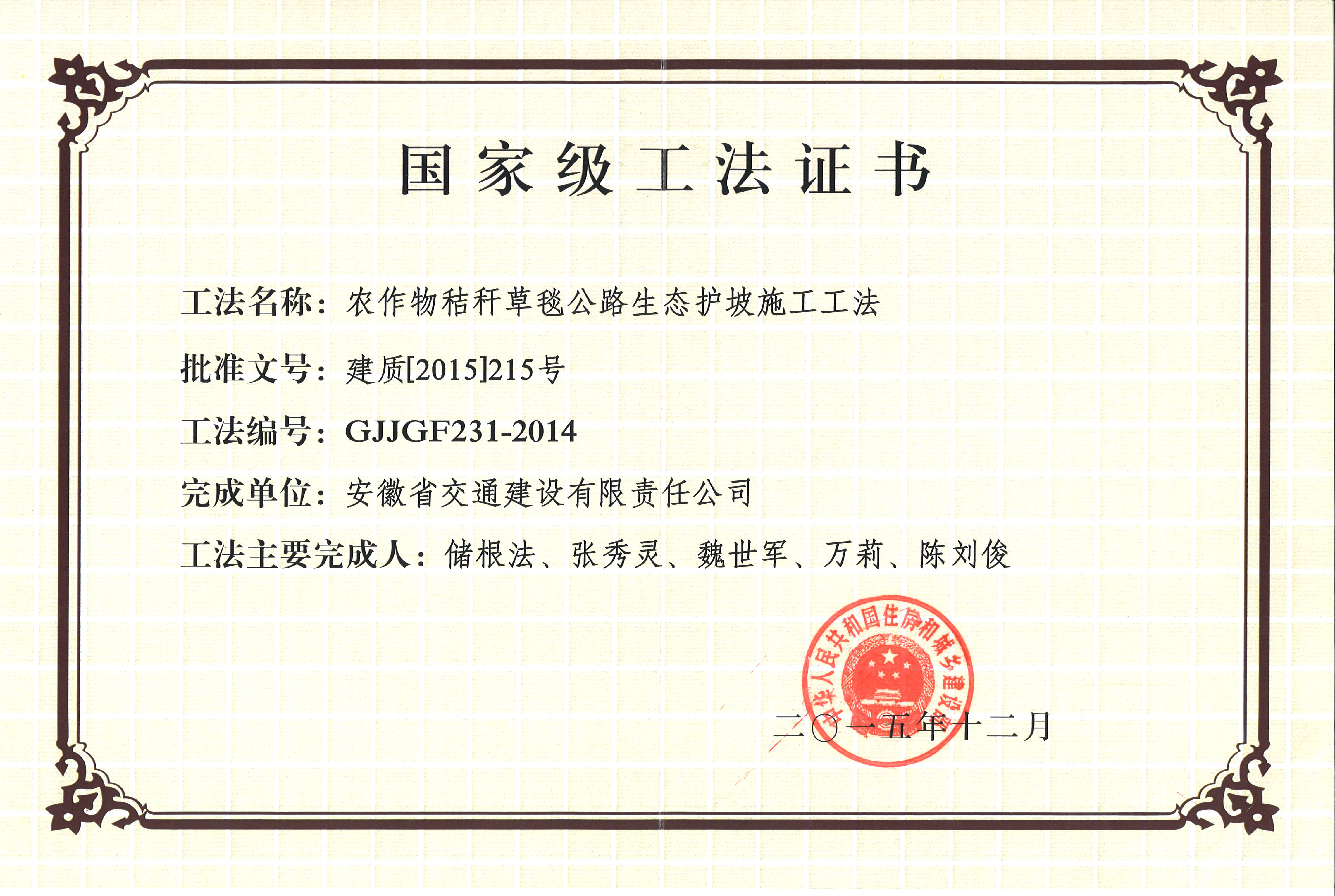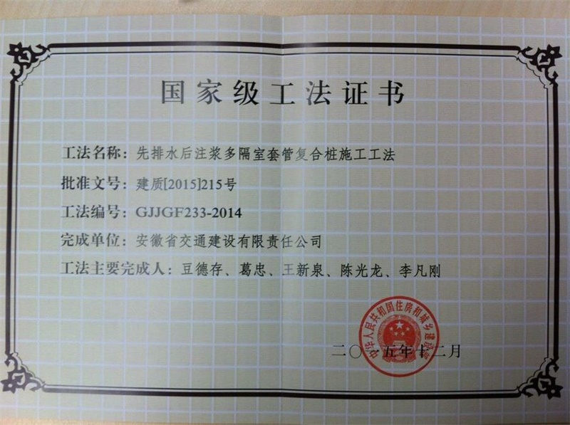 国家级工法证书